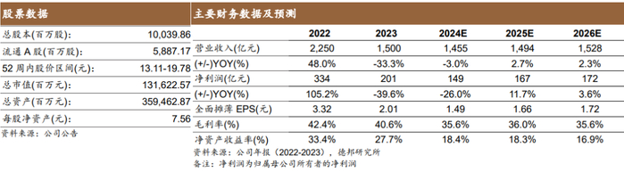 预计公司2024-2026年合计收入分别为1455/1494/1528亿元,归母净利润分别为149/167/172亿元,EPS分别为1.49/1.66/1.72元。