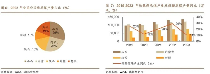 公司聚焦煤炭主业,响应规划战略西移。国家于2016年12月发布的《煤炭工业发展“十三五”规划》中指出,煤炭开发总体布局是压缩东部、限制中部和东北部、优化西部,明确提出煤炭开发要向内蒙古、陕西、新疆三个省区转移,新开工煤矿规模将占到全国的 80%。2021年以来,拥有资源和成本双重优势的晋陕蒙新地区产能则显著增加。2023年,晋陕蒙新四省原煤产量占全国的81%。从增速上看,2019-2022年新疆增速显著,增速稳定在10%以上。由于2023年,受到煤炭下游需求下降及进口对国内市场的双重冲击下,全国煤价整体下行,新疆煤炭产量虽有稳步增长,但增速较上年有所放缓,23年同比增加11%。