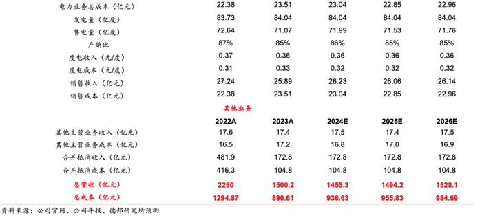 煤炭业务:我们预计未来公司煤炭产销将受益于产能利用率&新建矿投产继续上升,2024/2025/2026年销量预计为12872.7/13430.4/13849.1万吨。