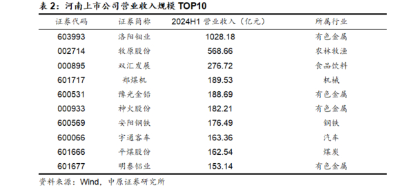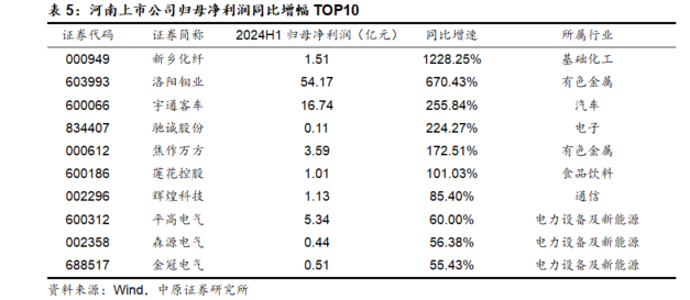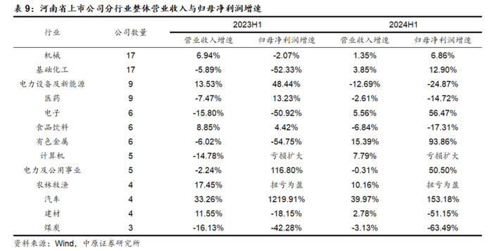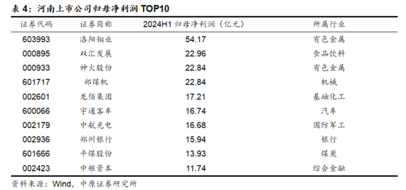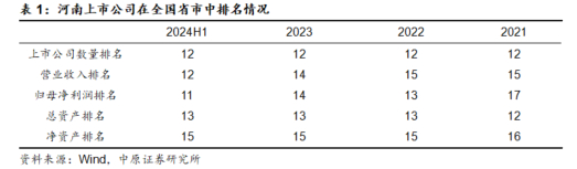 【河南专题研究】豫股专题:河南省上市公司2024年中报总结