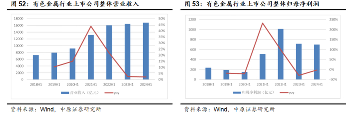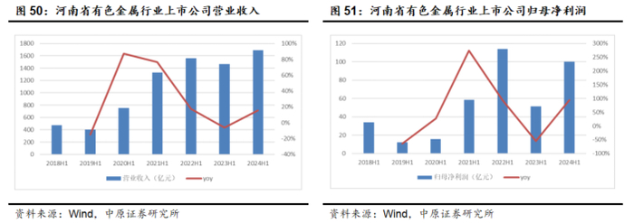 小结:总体来看,河南省上市公司在2024上半年实现了较为稳健的业绩增长,盈利能力有所提升,业绩增速超越A股整体以及A股中部分主要指数或板块;部分优势细分领域例如有色金属、机械、基础化工等产业的上市公司不仅实现了收入和利润的双增长,同时业绩增幅也不同程度好于行业整体水平。