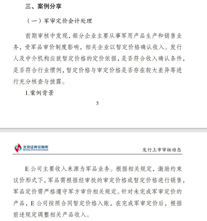 对于军审定价会计处理事项,审核中重点关注:第一,暂定价格的定价依据是否充分,相关内部控制制度是否健全且得到有效执行。第二,以暂定价格确认收入是否符合收入确认条件,是否符合行业惯例。第三,暂定价格与审定价格的差异情况及对发行人经营业绩的影响,发行人是否充分揭示由此可能导致的业绩变动风险。