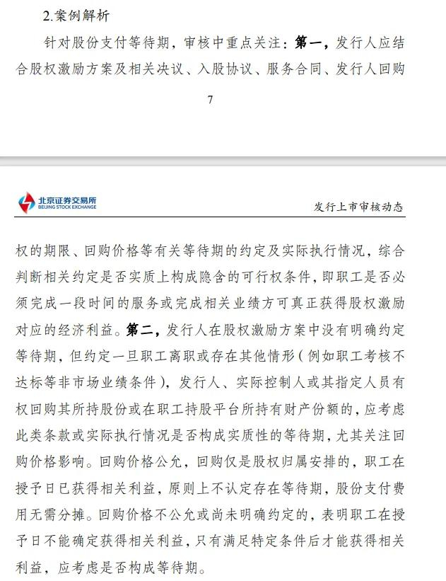 前期审核中发现,部分企业存在股份支付,需考虑是否约定等待期,对于设定等待期的股份支付,股份支付费用应在等待期内分摊确认。发行人及中介机构应就发行人是否约定等待期及等待期的确定依据进行充分核查和披露。