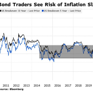 这一盈亏平衡通胀率是根据基准10年期美债收益率与10年期通胀保值债券(TIPS)收益率之差计算得出的。目前,名义美债收益率的下降速度正快于TIPS,因此导致了盈亏平衡通胀率的走低。