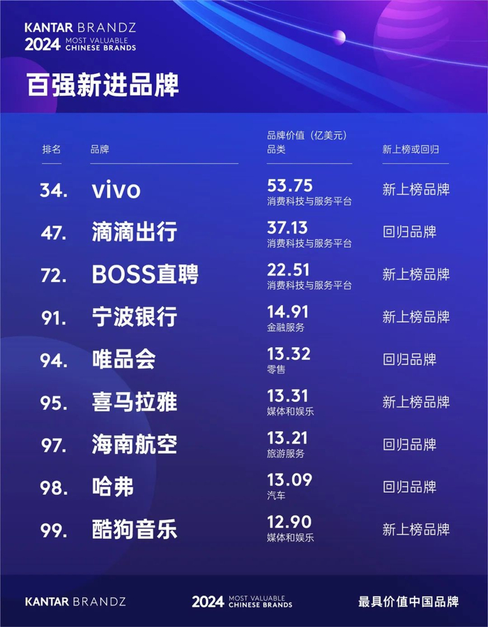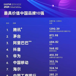2024年凯度BrandZ最具价值中国品牌100强发布,腾讯居首、华为增速最快 | 美通社头条