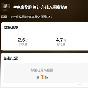 9月10日晚,#金鹰奖删除刘亦菲入围资格#冲上热搜,引发关注。
