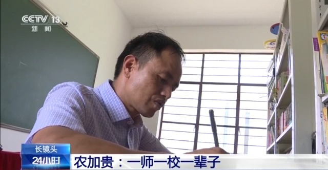 农加贵:我先教高年级的学生怎么预习,交接好。把低年级学生新课上完了,自己做作业,再来高年级这边上新课,把高年级的新课上完了,布置的作业做完了之后,我就要到低年级检查他们该做的作业做好了没有,有什么不懂的地方,就是这么轮换着。