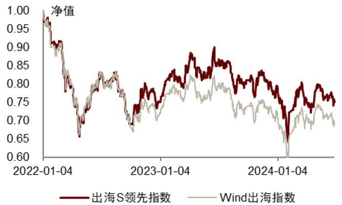 注:出海S领先指数在Wind出海指数成分股的基础上选取行业内中金ESG评级体系中,S维度评分排名在前50%的公司,时间区间为2022年1月1日-2024年6月30日