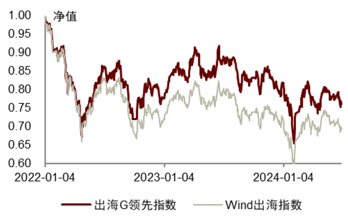 注:出海G领先指数在Wind出海指数成分股的基础上选取行业内中金ESG评级体系中,G维度评分排名在前50%的公司,时间区间为2022年1月1日-2024年6月30日