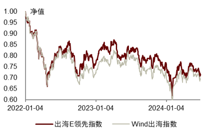 注:出海E领先指数在Wind出海指数成分股的基础上选取行业内中金ESG评级体系中,E维度评分排名在前50%的公司,时间区间为2022年1月1日-2024年6月30日