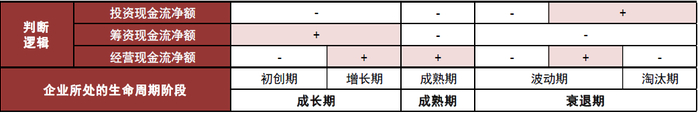 图表9:经营现金流、投资现金流和筹资现金流对应的企业生命周期