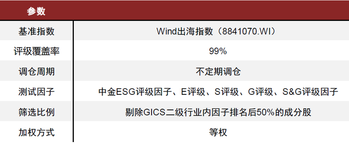 ► 确定筛选比例:以50%作为负面筛选比例,根据中金ESG评级、E、S、G季度数据剔除不符合要求的公司,形成筛选后的股票池;同时,在出海主题下,由于S和G维度对企业出海合规经营和可持续发展具备较高的显著性,我们构筑S&G因子,即同时剔除S和G在二级行业排名后50%的公司。