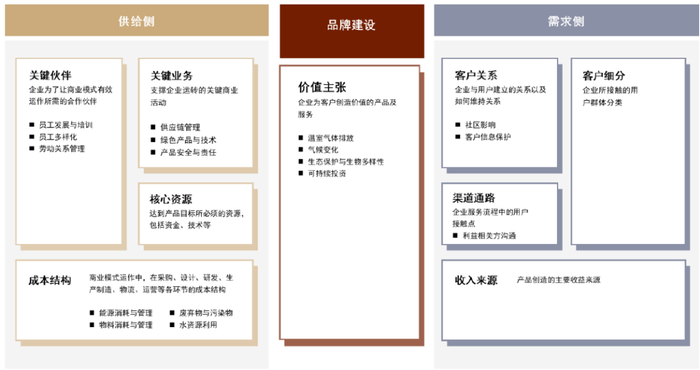 在股东回报视角下,ESG建设有助于改善企业商业模式,稳定股东长期回报。借助商业幕布与中金ESG评级中环境和社会责任二级议题的匹配,我们认为,相关议题的提升能够在商业幕布的关键要素中发挥作用,帮助企业提升品牌价值,并在产品和服务的供给侧和需求侧两端协同发力,提升企业在国际市场竞争力,保障出海企业的长期可持续经营。