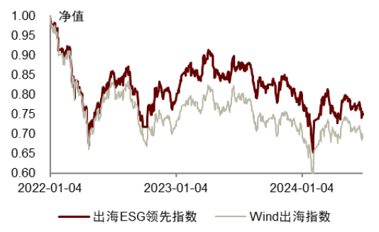 注:出海ESG领先指数在Wind出海指数成分股的基础上选取行业内中金ESG评级体系中,ESG总分排名在前50%的公司,时间区间为2022年1月1日-2024年6月30日