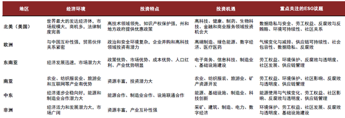 图表3:全球不同地区营商环境特点与需要重点关注的ESG议题