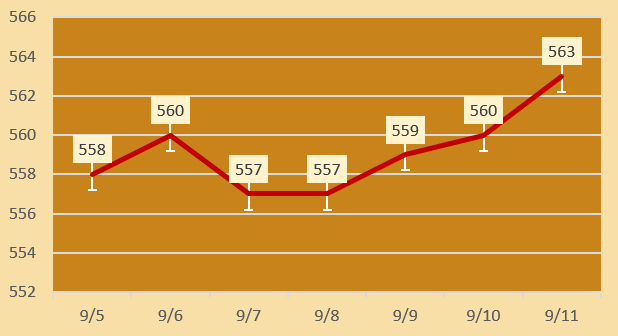 今日黄金回收价格每克563元,铂金回收价格每克191元,钯金回收价格每克185元,18K金回收价格每克399元,白银回收价格每克5.5元。(黄金行情是波动的,回收金价没有固定标准。)