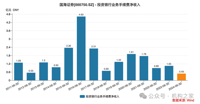 细究其中,国海证券多项主营业务收入出现不同程度下滑。其中,投资银行业务收入仅为0.49亿元,同比骤跌53.70%,几乎退回到了2012年的水平。这一数据凸显出国海证券在投行业务领域面临的严峻挑战。
