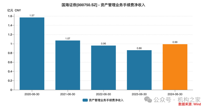 在这片阴霾中,资产管理业务倒是为国海证券带来一丝亮色。2024年上半年,公司资产管理业务手续费净收入达0.99亿元,同比增长15.08%,终结了连续三个中报的下滑趋势。从近五年的营收情况来看,这一业绩改善或许反映出国海证券在资管业务转型和产品创新方面取得了一定进展,但与行业头部券商相比,其规模和影响力仍有待提升。