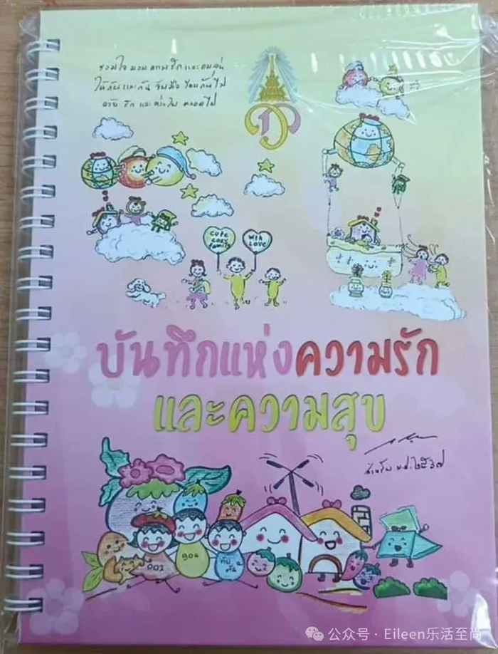 不仅如此,前段时日,泰国有个省分发的皇家礼盒,有些用的是代表老哇的黄盖子,有些则是粉盖子,里面还有本漫画日记,名字叫做“爱与幸福的记录”。