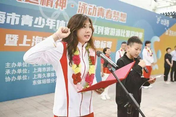 唐钱婷在上海市青少年体育精英系列赛游泳比赛总决赛开幕式