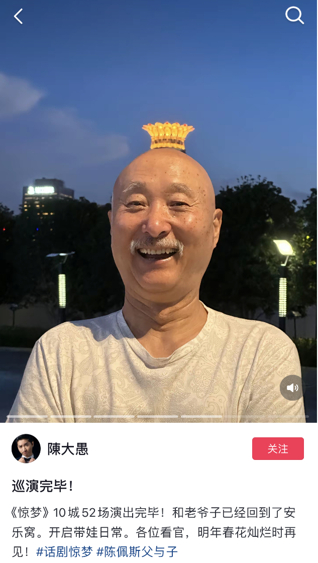 话剧《惊梦》以传统戏班的命运为主线,讲述了昆曲戏班和春社在战乱年代竭力求生存、进行文艺演出的故事。从剧本创作到搬上舞台,三载打磨。自2023年年初演出恢复开始,陈佩斯父子带着60人的剧组辗转各地,把这个「梦惊已是新天地,旧曲依稀绕古城」的故事带给天南地北热爱戏剧的观众。