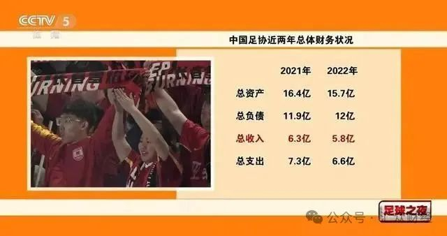 据2023年10月21日,据央视体育频道《足球之夜》公布的消息显示,中国足协公布了2021年、2022年财务报告。