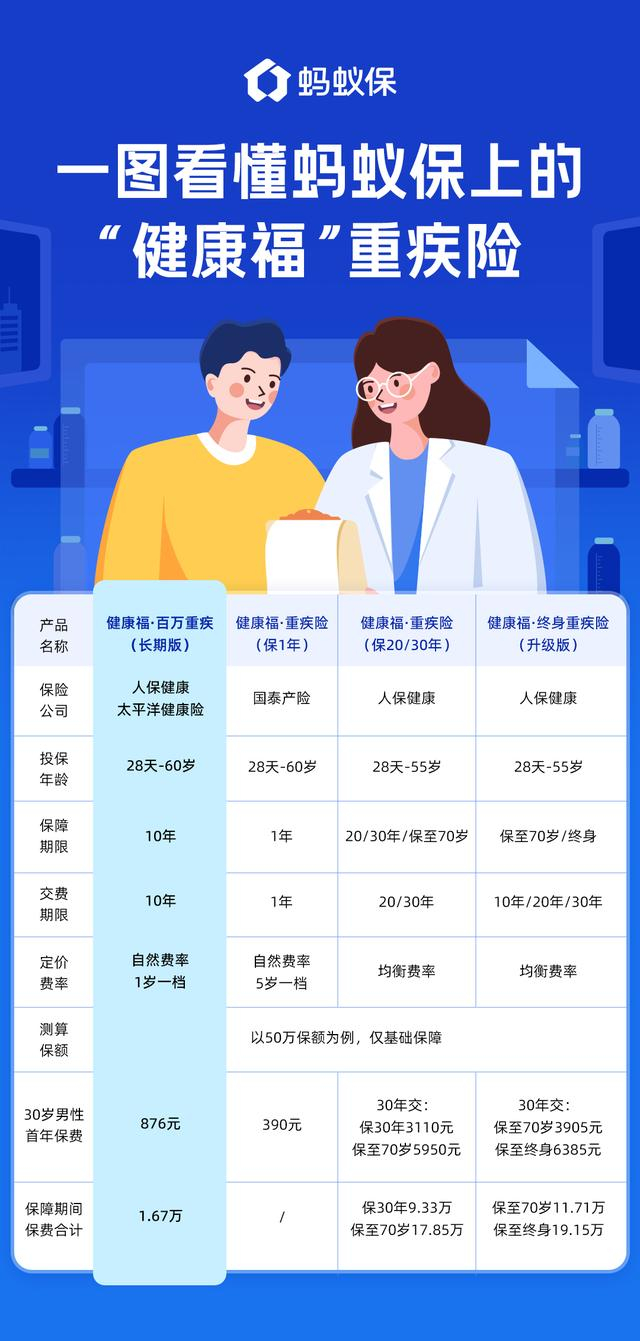 据悉,健康福百万重疾险缴费期和保障期均为10年,有20万、60万、100万三种保障方案可选,基础保障责任覆盖160种重疾,另外还有25种中症和50种轻症为可选的保障责任,用户可根据自身需求灵活搭配保障方案。