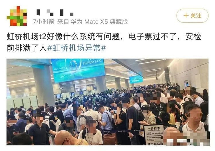 今早突发上海虹桥机场人山人海疑似系统崩溃回应来了
