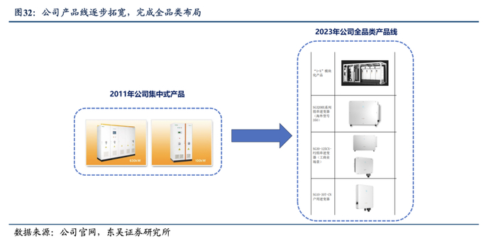从集中式拓展至全品类产品线,技术沉淀、竞争优势明显。公司以集中式产品为根基,拓展组串式等逆变器产品,多年深耕研发完成全品类产品线布局。