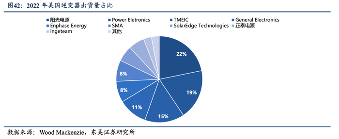 美国市场根基深厚,业务表现强劲。美国、澳洲、欧洲等市场客户对产品质量、服务与品牌要求较高,形成一定的进入门槛,得益于长期的品牌建设和渠道布局,公司拥有先发优势,在美国等海外市场具有稳固的龙头地位。根据Wood Mackenzie数据,2022年公司美国市占率达22%,稳居第一。