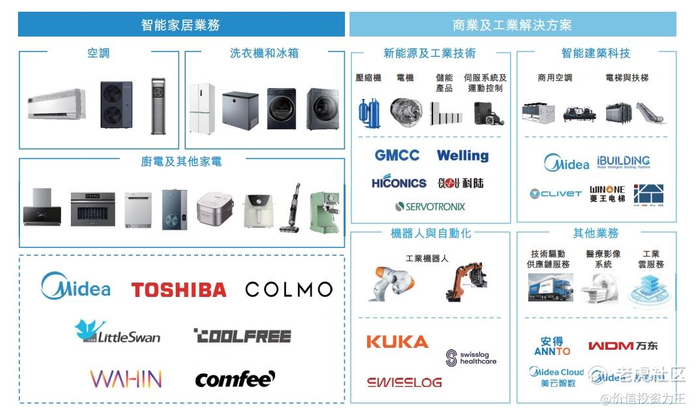 除了靠海外家电市场增长外,美的还有其他业务,比如工业机器人、新能源、医疗影像系统等: