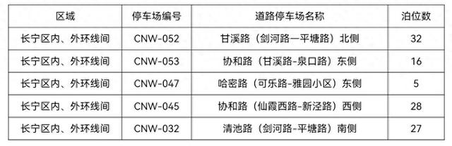 长宁区此前已实施智慧收费管理的道路停车场清单