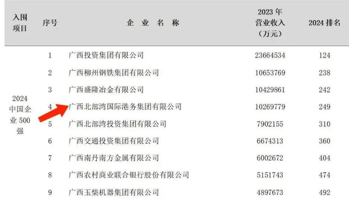 北部湾港集团连续13年上榜→“2024中国企业500强”发布!