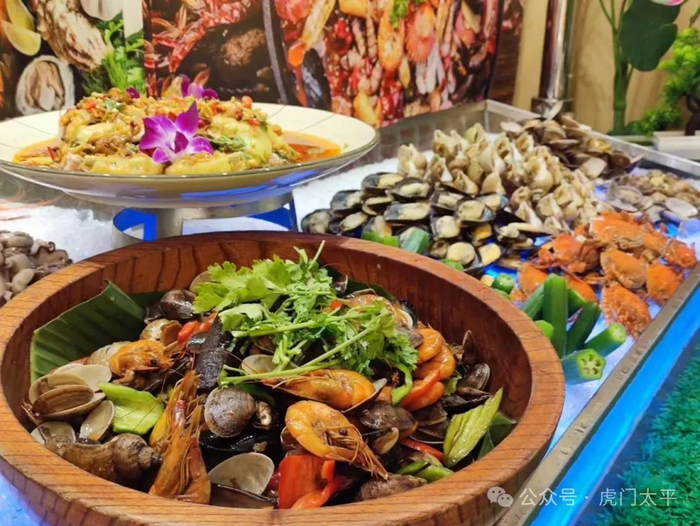 还有上百种新鲜生猛海鲜,花虾、生蚝、海仓鱼……应有尽有。