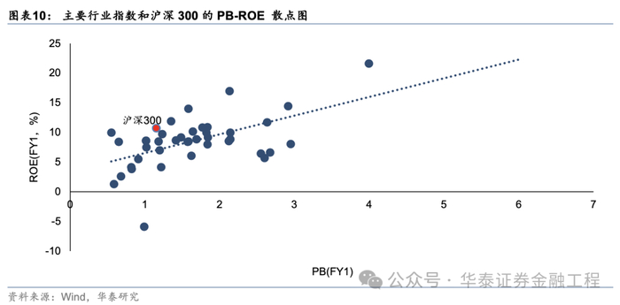 与此同时,沪深300指数的动态估值也显示出其独特的优势。基于PB-ROE的动态分析,该指数目前处于趋势线以上且与趋势线的绝对距离较大。这意味着在预测的资产回报率较高的情况下,其动态估值相对偏低,为投资者提供了更具吸引力的风险收益比。在市场回升阶段,这种动态估值的优势有望进一步释放,为投资者带来更为可观的回报。