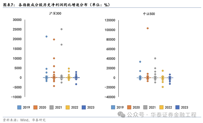 沪深 300 成分股整体表现出较为稳定和适中的成长性,其指数的盈利增速较稳定。这种稳 定性反映了沪深 300 成分股的相对均衡和低波动性,适合长期投资者的需求。相比之下, 中证 500 等指数的成分股之间增长速度差异较大,正负向增速范围宽泛,部分标的在市场 上行阶段具备较高的成长性和利润弹性,能够带来较高的投资回报。然而,这种增长特征 在整体成分股中并不统一,导致指数整体的盈利增速表现波动较大。因此,沪深 300 指数 在成长稳定性方面具有明显的优势,适合希望规避波动风险的投资者。