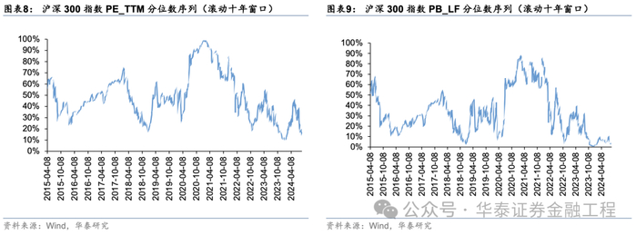 具体而言,沪深300指数的市盈率PE_TTM已经降至过去十年间15%以下的分位水平。尤其值得注意的是,其市净率PB_LF更是跌至过去十年5%以下的分位水平,这种使得沪深300的投资价值凸显。