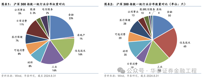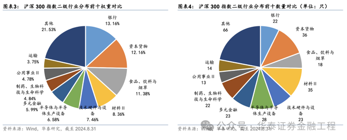 沪深300指数的行业和市值配置日益趋向平衡,反映出A股市场在市值及结构分布上的持续改善。起初,沪深300指数的构成中,金融行业占据了较大的份额,且个别金融股的权重偏高,但随着市场的不断成熟,指数成分股的行业分布逐渐向均衡发展。目前,沪深300的成分股横跨了28个申万一级行业,不仅包括传统的金融行业,消费、高端制造、科技等领域的权重也显著增加。