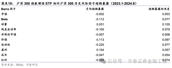 我们基于Barra风险因子体系,对华安沪深300指数增强ETF的暴露进行测算。作为ETF产品,指增ETF的换手率通常较主动指增基金更低,我们以月度频率进行采样,通过申赎清单(PCF)测算每个月基金的Barra风险因子暴露,并进一步分析各个因子带来的收益。