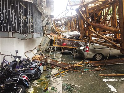 9月10日,小区物业负责人告诉记者,第一砖厂北小区1996年建成,塔吊属于隔壁阳光巴洛克广场建筑工地,已经存在十几年了。台风前业主多次要求拆除,但施工单位一直没拆,导致出现严重后果,初步估计造成经济损失上百万元。