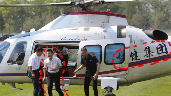 这种登场方式虽然浮夸但是有效——这架印有“权健集团”名号、号称价值7000万的直升机,当时引发了不少本地人围观。