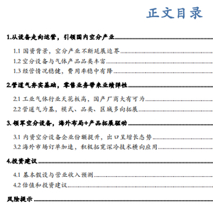 管道气为基,模式、品类、区域多向拓展。1)截至 2023 年末公司气体投资累计制氧量已达 320 万 Nm3/h,管道气运营模式穿越周期,部分运营项目折旧期满后,毛利率或有提升空间,进一步夯实公司业绩基础。2)持续区域性扩张,减少区域性波动影响,公司已在全国范围内成立八大区域,2023 年新签印尼气体项目,迈出了气体产业国际化的第一步。3)公司的零售气业务不断丰富,在完善公司品牌、渠道等建设的基础上,零售气在市场景气度提升时,有望带来公司业绩弹性。4)公司生产的特种气体产品有稀有气体,高纯、超高纯气体,电子大宗气等。未来有望以特种气体作为重要业务板块,实现更多高附加值气体产品的生产与销售,提升气体业务整体毛利率。