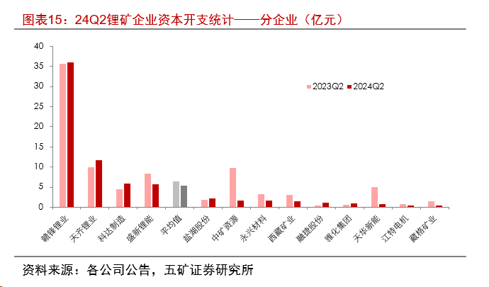 5.资本开支:Q2锂矿企业资本开支同比转负
