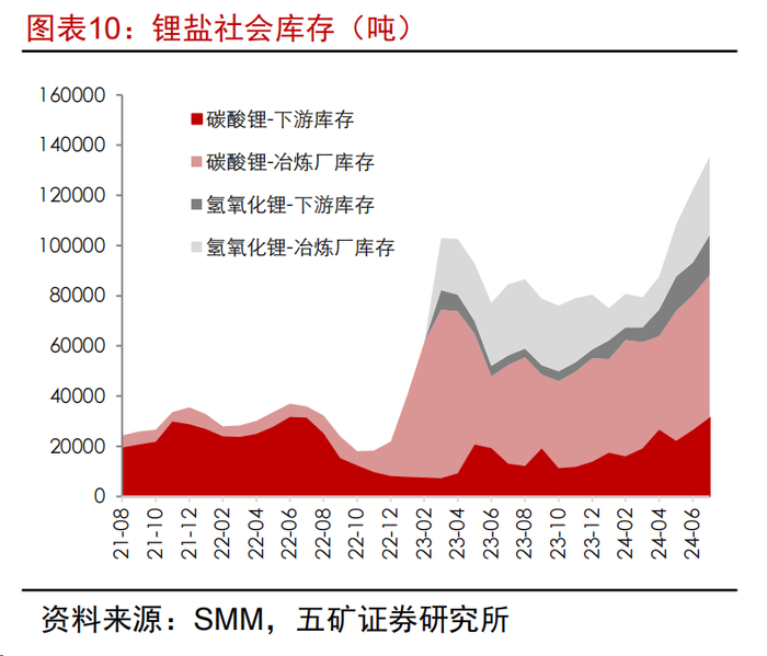 •3)库存:锂矿上市公司24Q2库存环比略上升3.82%,24Q2锂矿企业累库8.28万吨LCE,中国锂盐累库主要集中在非上市锂矿企业。