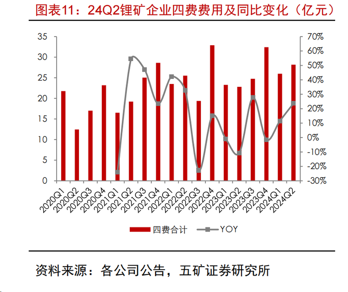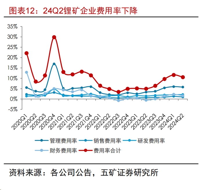 4.四费控制:锂矿企业进一步在管理层面降本难度较大