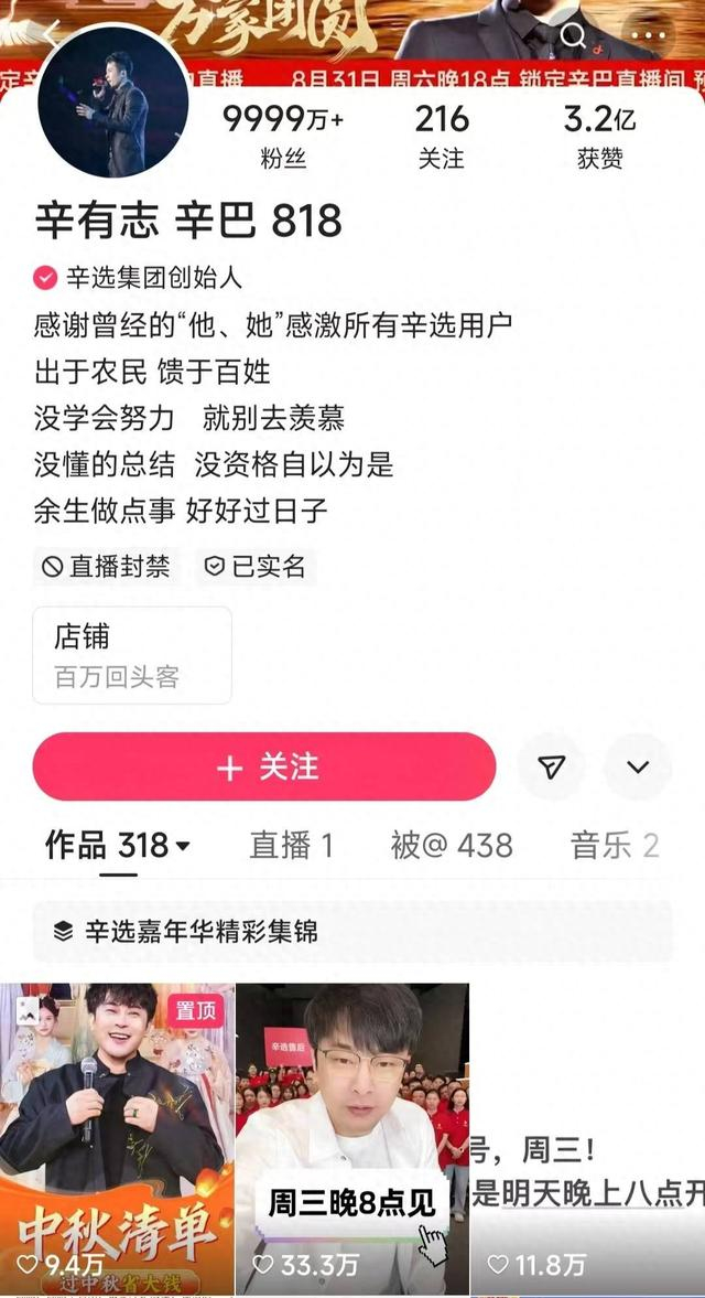 9月11日,澎湃新闻记者查询辛巴的快手账号发现,其主页显示直播功能已被封禁,不过其抖音平台的直播功能未受到影响。对此,辛选集团未给出回应。