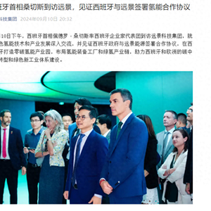 【环球网财经记者 陈超】据远景科技集团公众号显示,9月10日下午,西班牙首相佩德罗·桑切斯率领西班牙企业家代表团访问了远景科技集团,双方就绿色氢能技术和产业发展进行了深入交流,并共同见证了西班牙政府与远景能源正式签署合作协议。根据协议,远景计划在西班牙建设一个全面覆盖氢能生产和应用的零碳氢能产业园,布局绿氢产业链,助力西班牙及欧洲的碳中和目标。