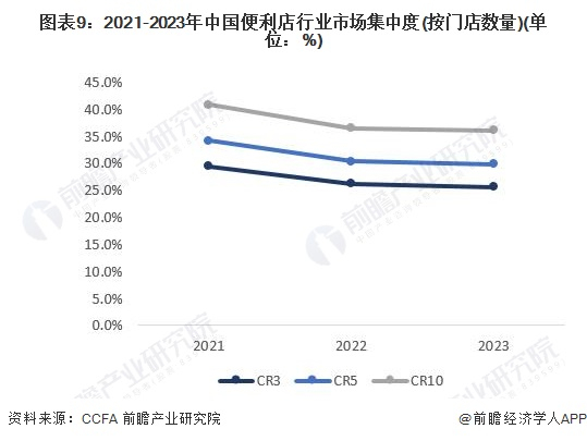 2、2023年中国便利店行业市场集中度呈下降趋势