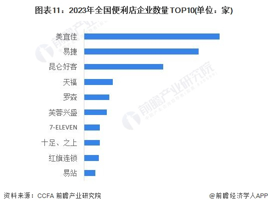 CCFA发布的《2023中国便利店TOP100名单》显示,美宜佳以33848家门店数位居第一位;中石化易捷位居第二位,门店数达28633家;中石油昆仑好客位列第三位,门店数达19780家;天福和罗森分别以7208家和6330家位列第四和第五。