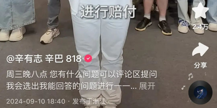 9月11日晚8点,本该是快手头部主播辛有志预告的直播时间,他将在这场直播中带着1亿元现金,代三只羊(抖音头部主播“疯狂小杨哥”所在MCN)对消费者进行赔付。但当晚,辛有志迟迟没有开播。